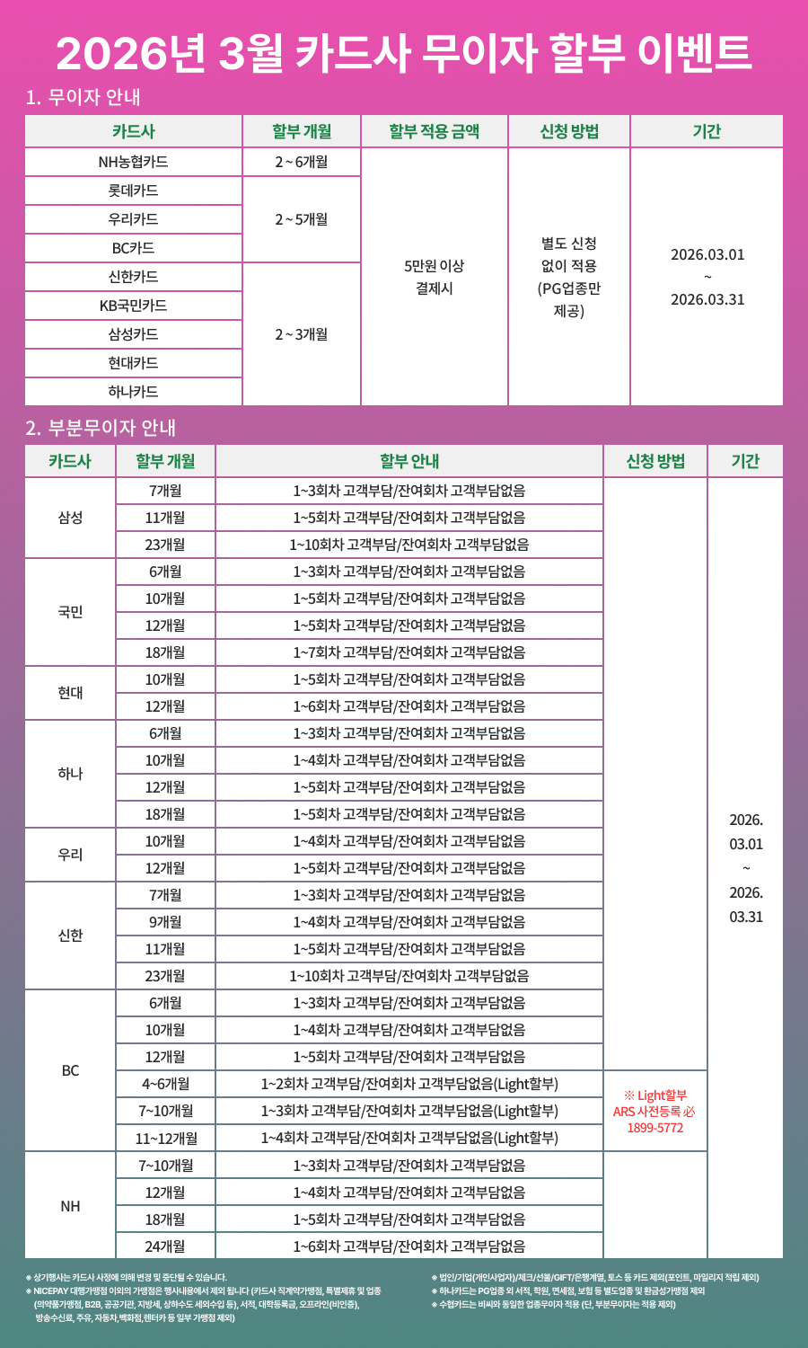 [2026년 3월] 카드사 무이자 할부 안내