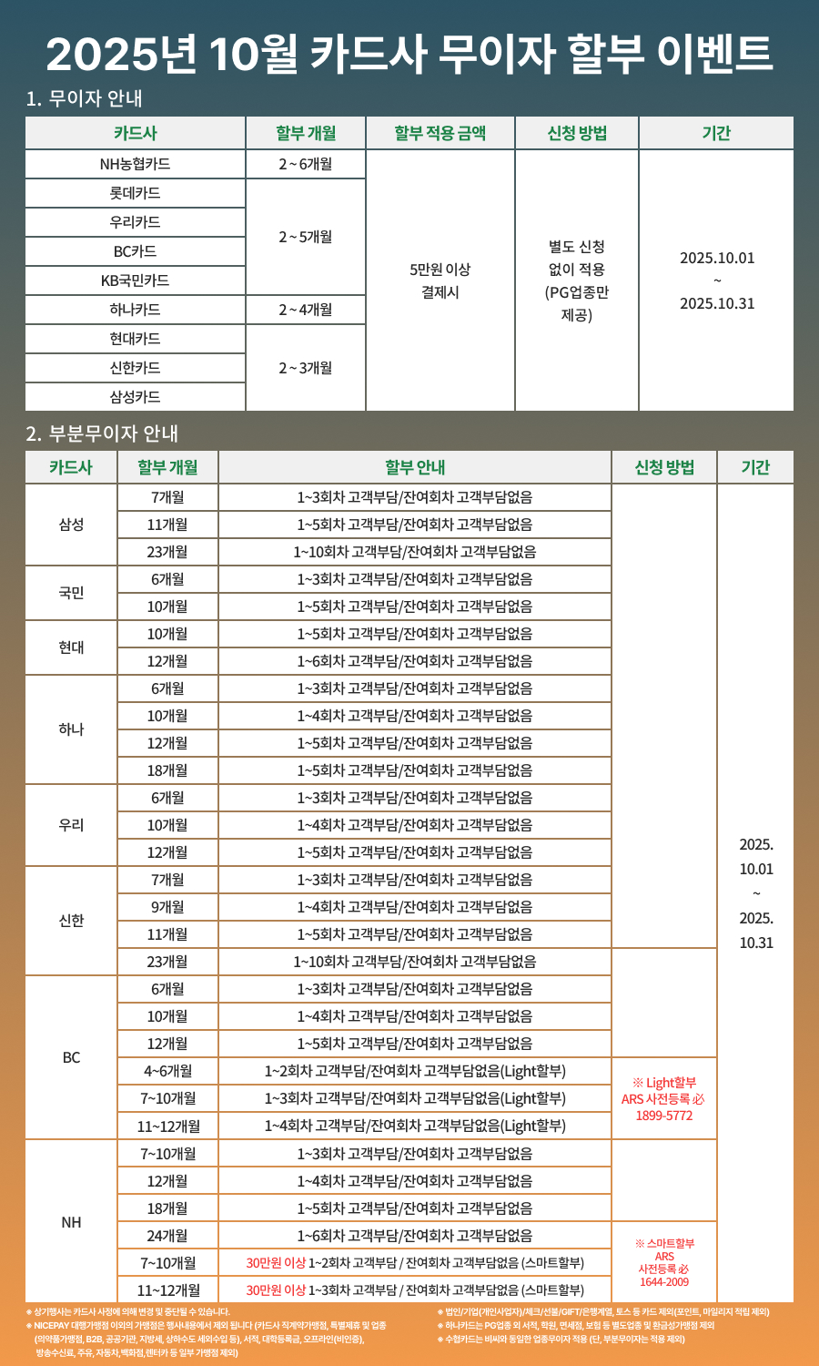 ※ 비씨,NH농협카드 부분무이자 ARS 사전 신청 고객의 경우에만 우대회차 적용
