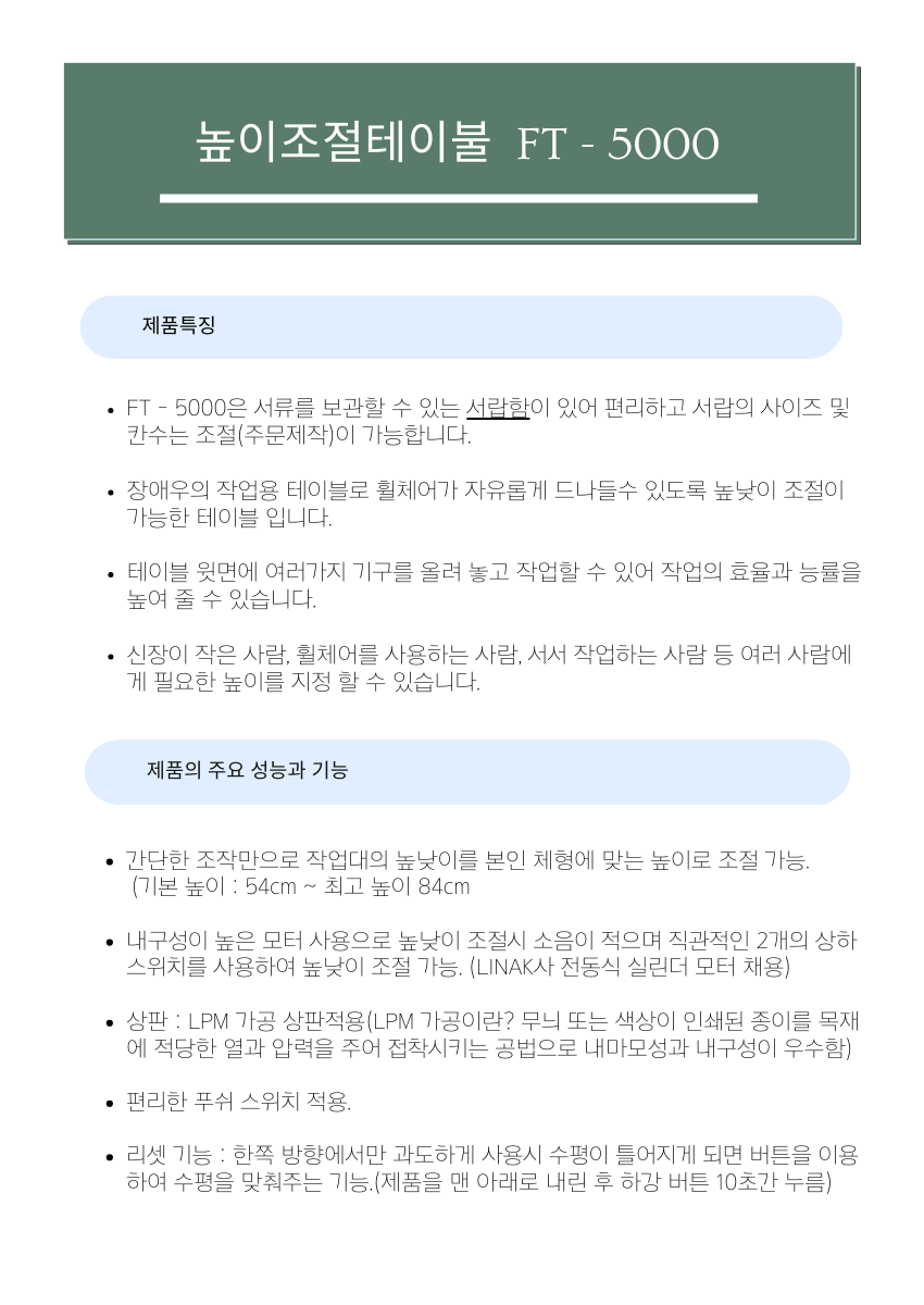 FT-5000은 상판이 우드재질로 서랍보관형으로 제작된 상품입니다.