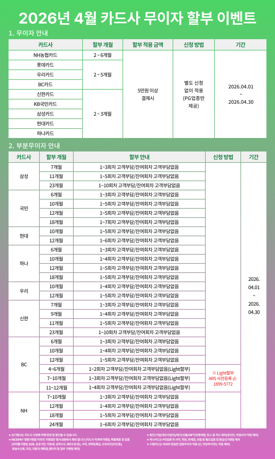 >이벤트내용: 비씨카드 회원 중 Light 할부 사전신청 고객에 한하여 적용 (※ Non-BC카드 제외)